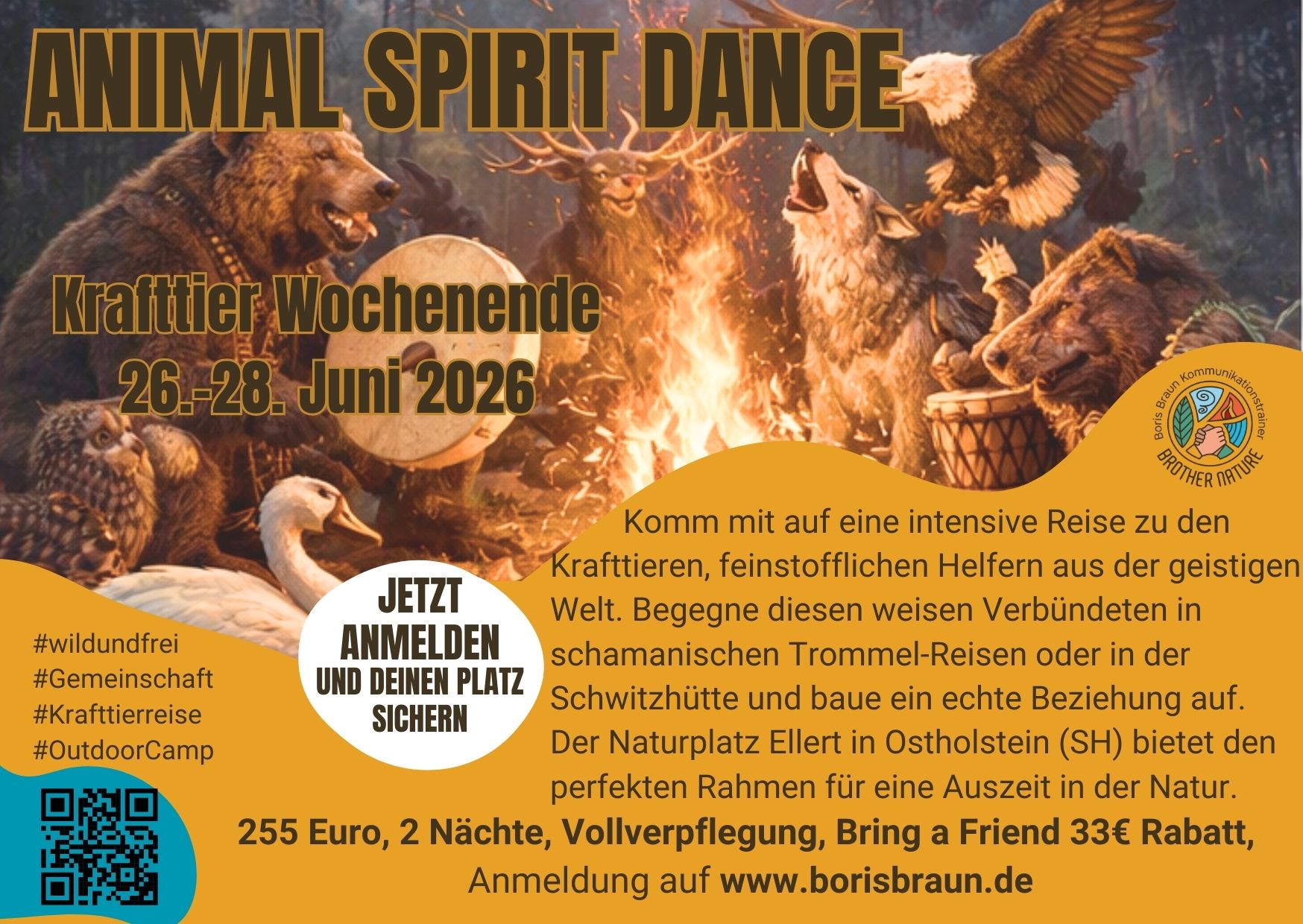 Aktiviere deine innere Welt und tanz mit uns mit den Krafttieren.